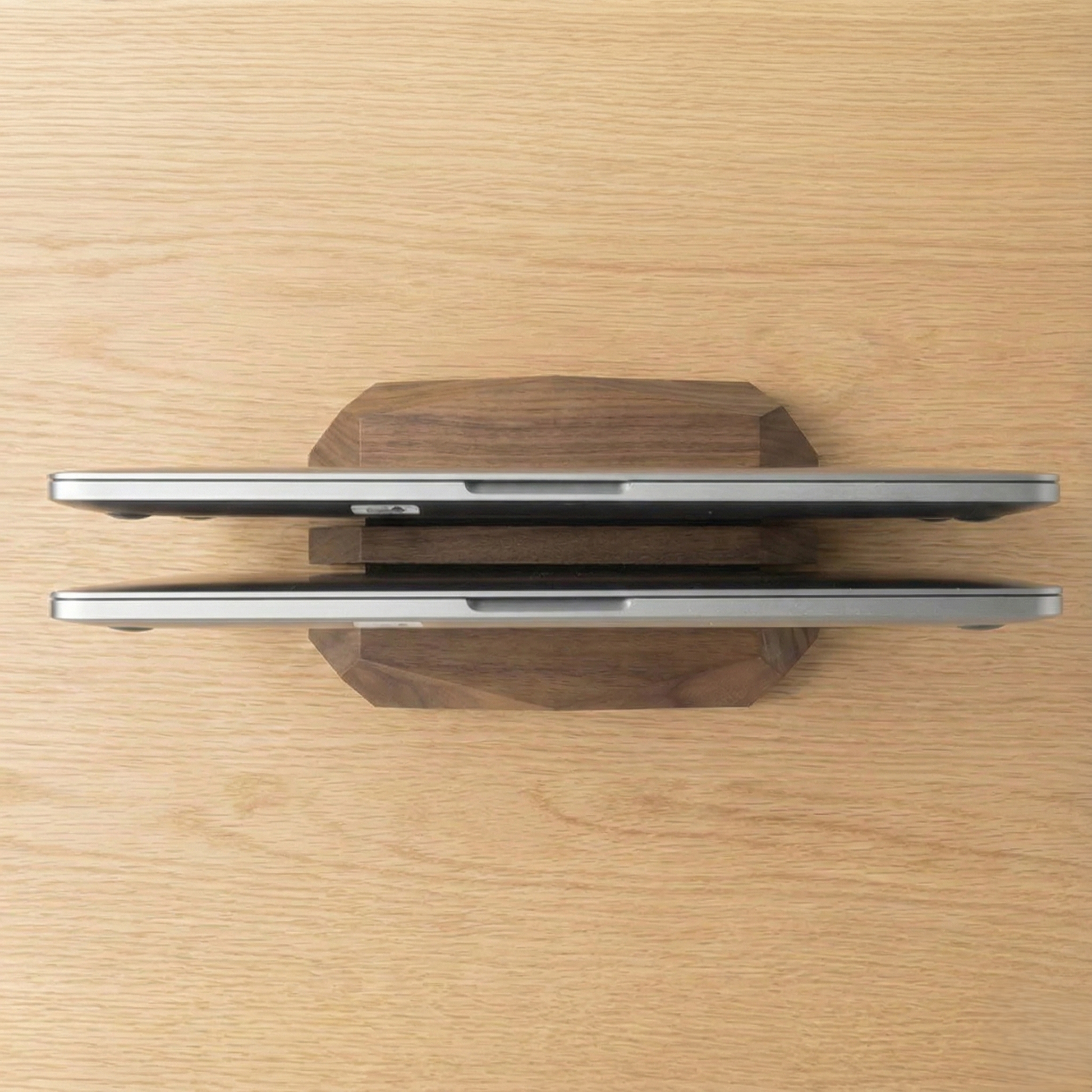 No. The interior of each slot is lined to help protect your devices from scratches while keeping them upright and stable. The solid walnut exterior provides structure, while the interior lining ensures gentle contact with your devices.