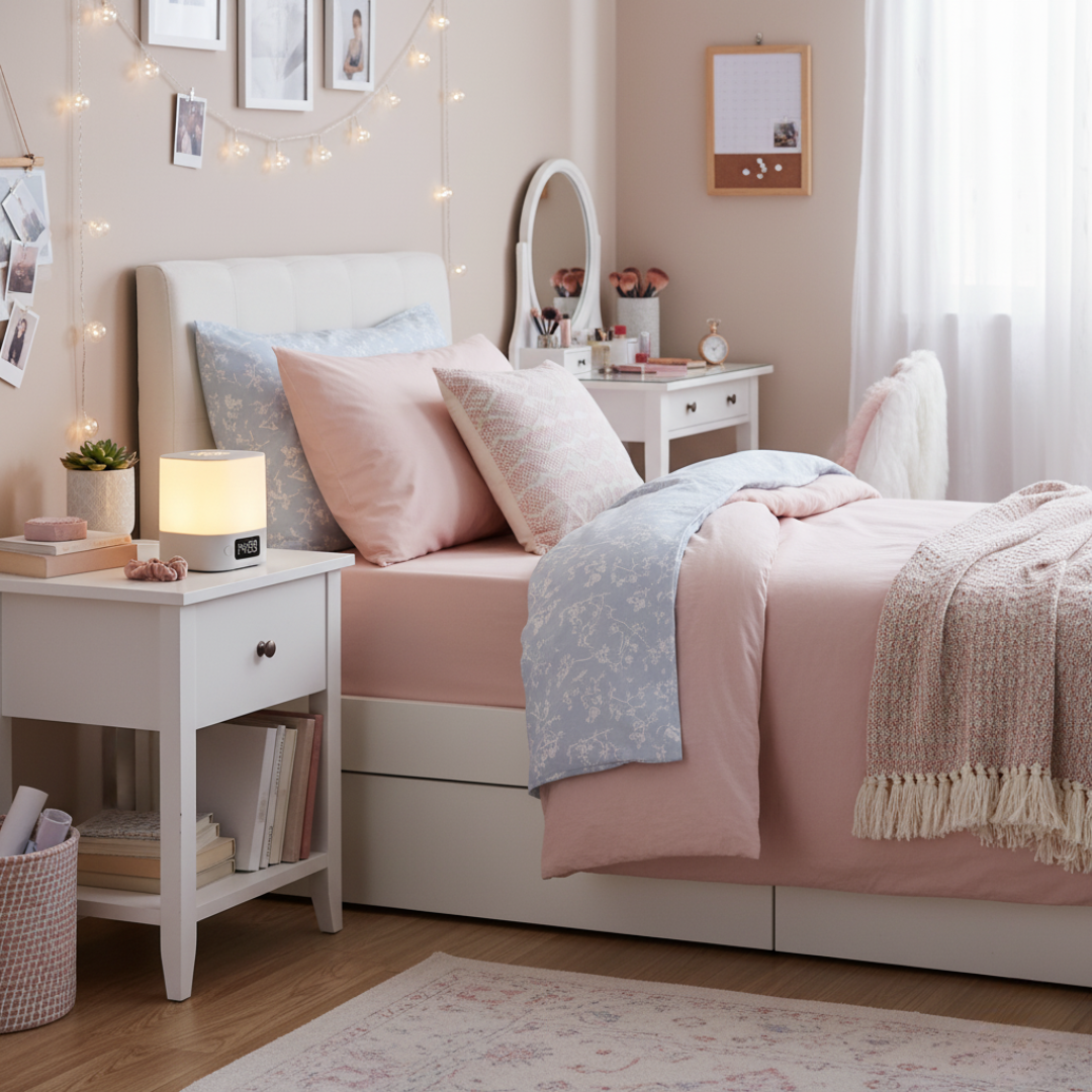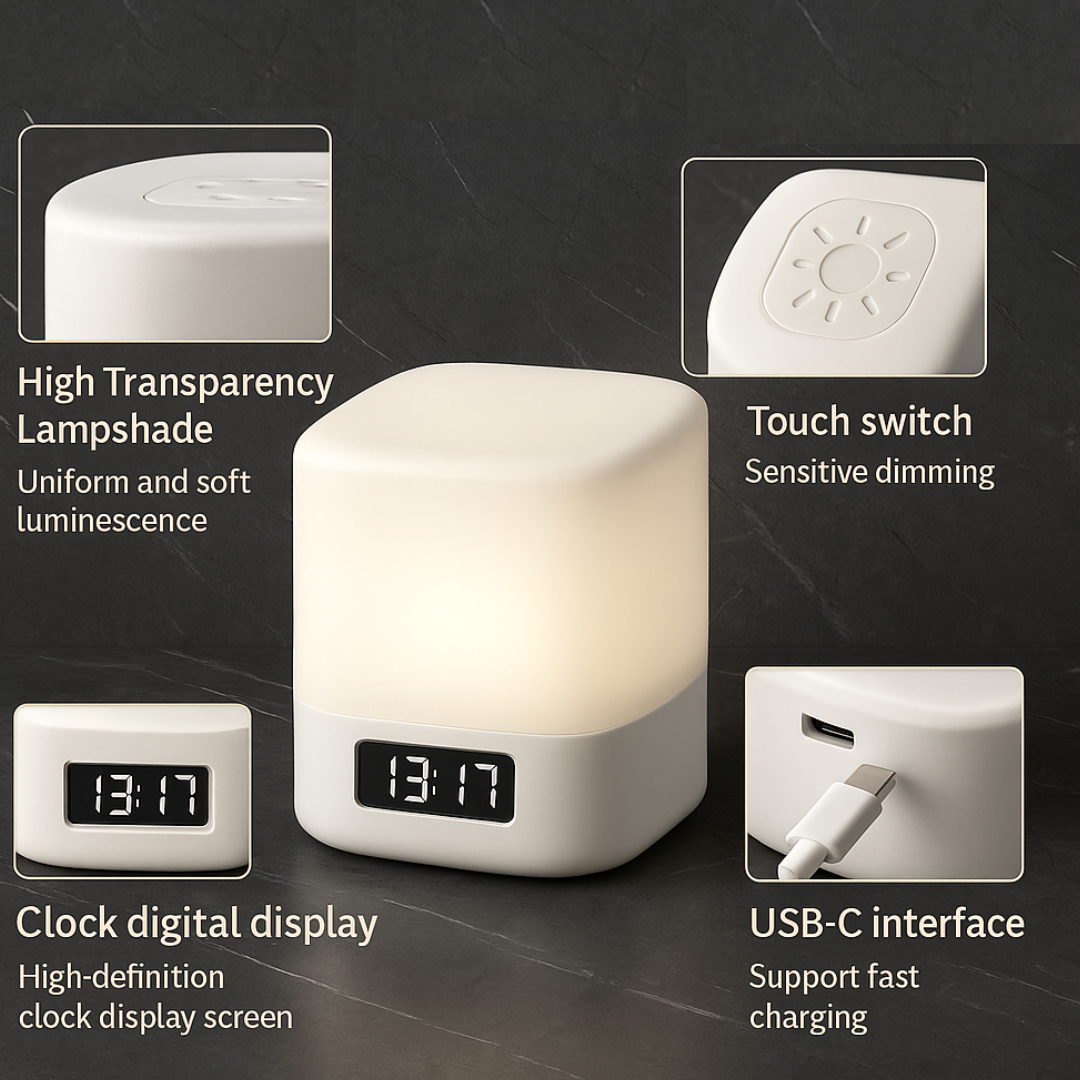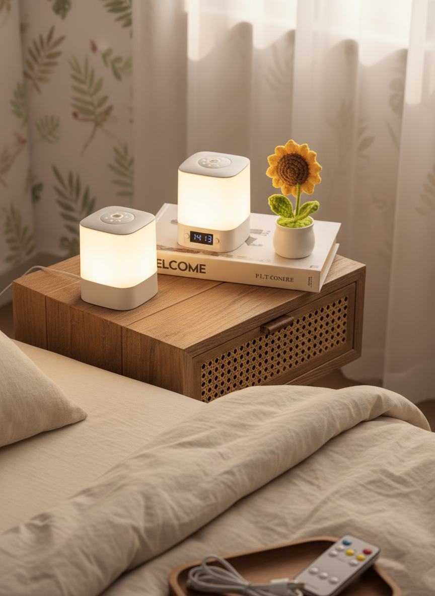 Compact, modern form that fits effortlessly on nightstands, desks, and travel setups