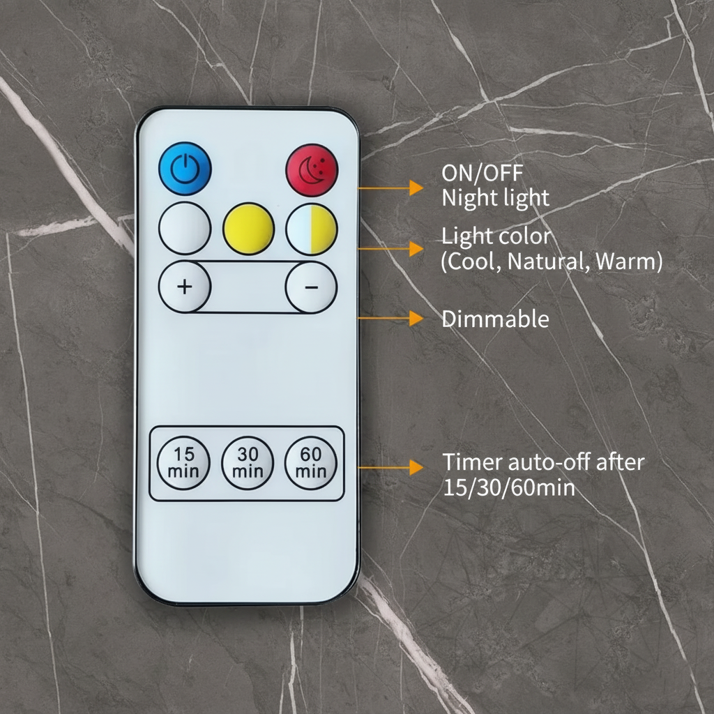 Set the ideal mood with adjustable light modes controlled directly from the remote. Switch between warm, natural, and cool tones, fine-tune brightness, activate night mode, or set a timed auto-off.