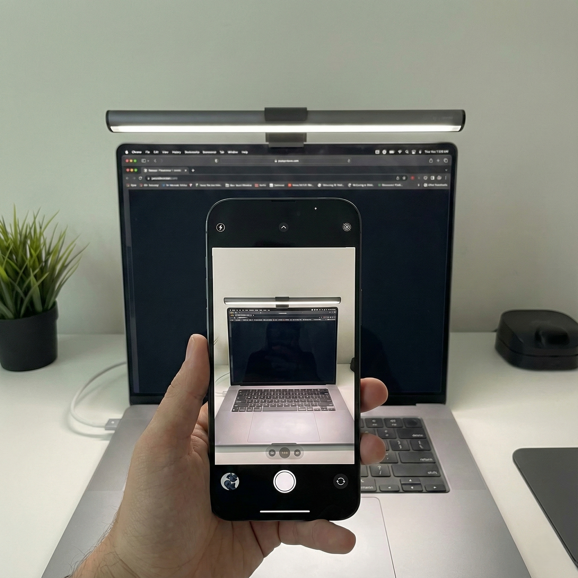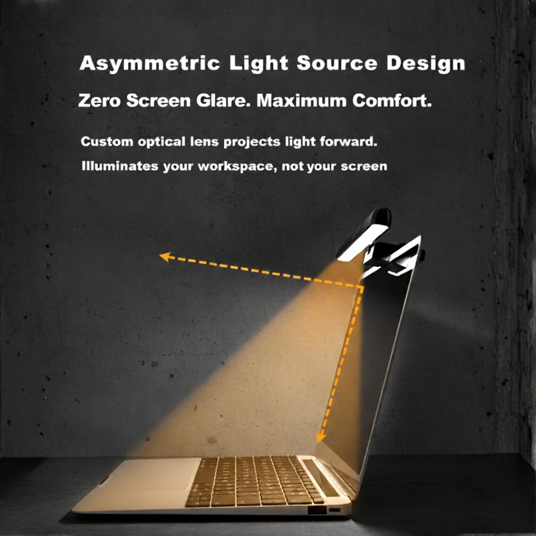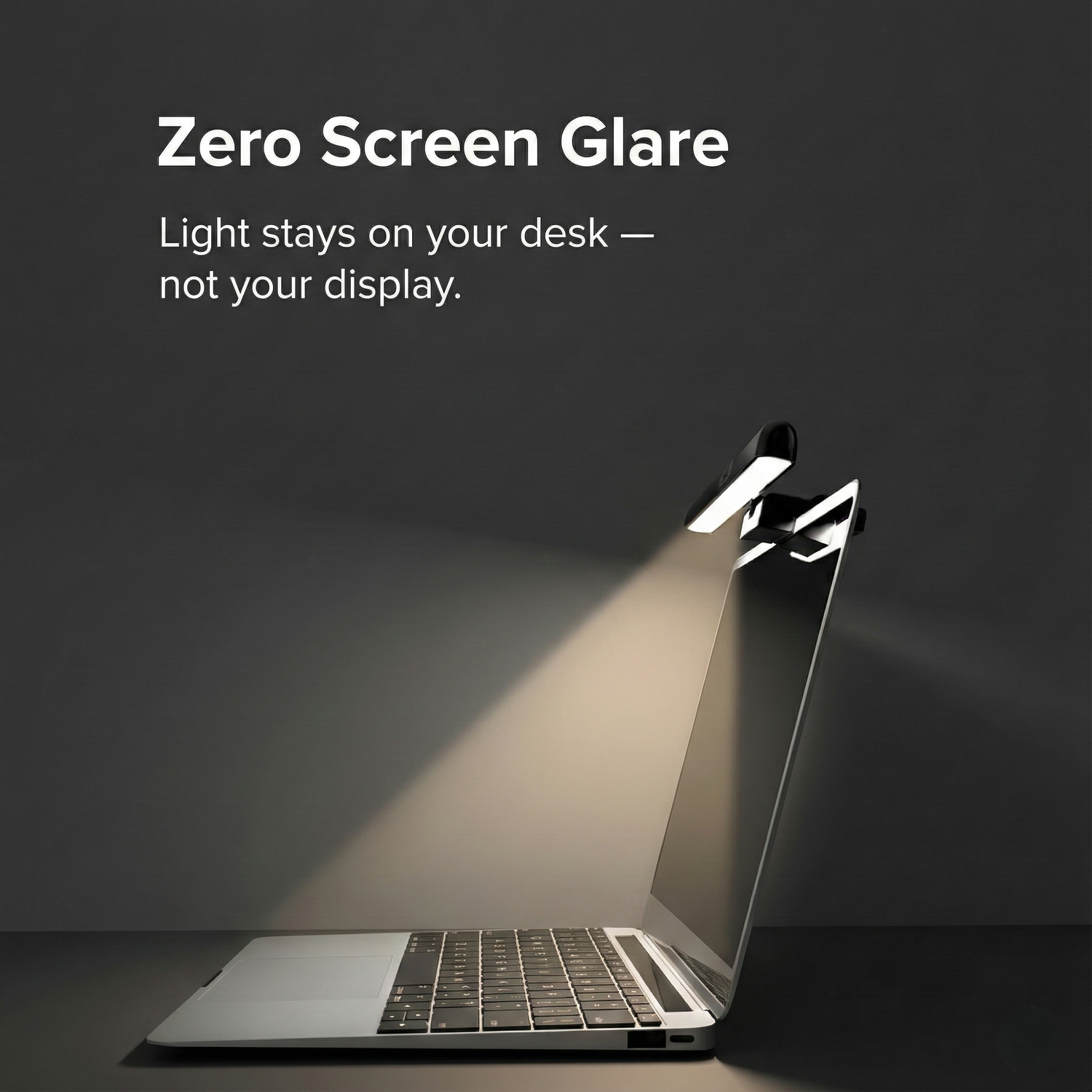 The light uses an asymmetric optical design that directs illumination forward onto your workspace, not toward your display. This prevents reflections, eliminates glare, and keeps your screen perfectly clear whether you’re working, gaming, or reading. -