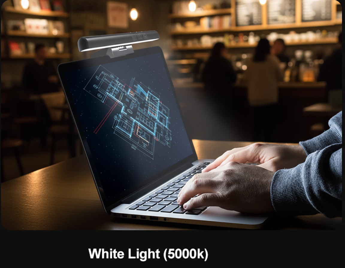 The light bar is powered through a standard USB connection, compatible with laptops, monitors, power banks, and USB wall adapters. No batteries, no charging, just plug in and use.