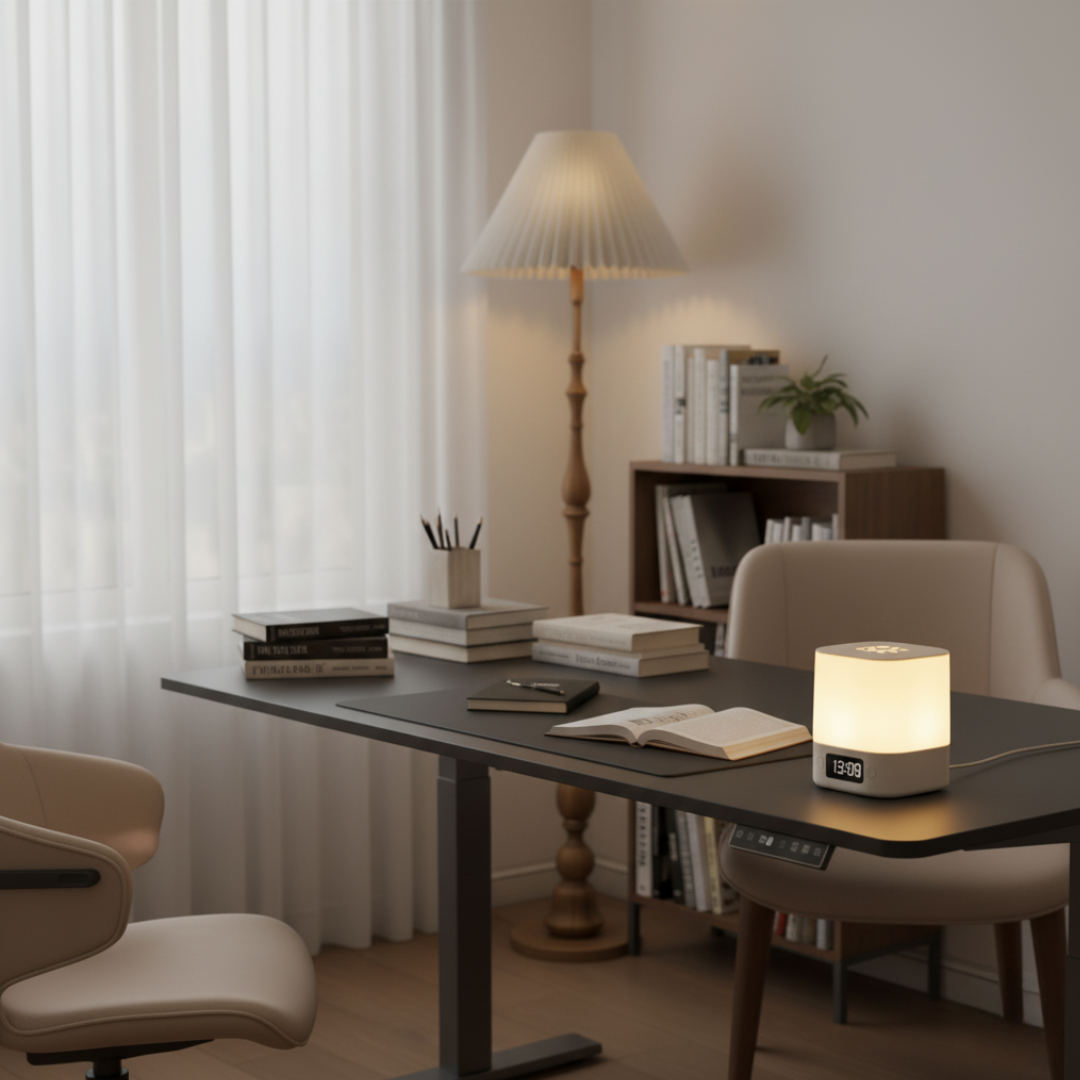 Tap the touch control on the base to switch between warm white, cool white, and natural white. Press and hold to smoothly adjust brightness to your preferred level. Also, the included remote lets you change light color, adjust brightness, activate night mode, and set a timer without needing to touch the lamp.