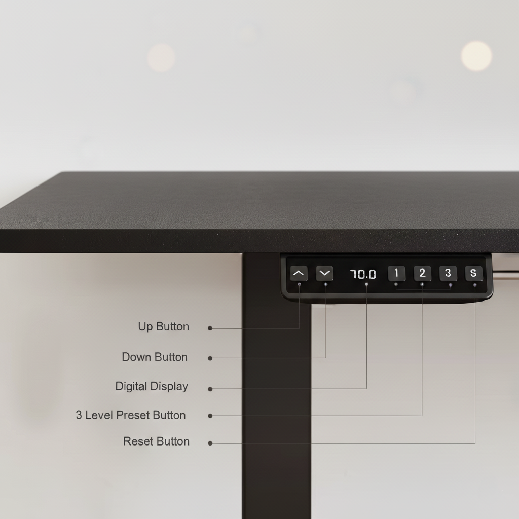 Our desk is engineered with a reinforced steel frame and wide T-legs to ensure rigidity even at maximum height. The advanced lift system minimizes wobble, and the adjustable leveling feet keep the desk balanced on hardwood, tile, or low-pile carpet. Whether typing, gaming, or using multiple monitors, the surface remains steady and reliable.