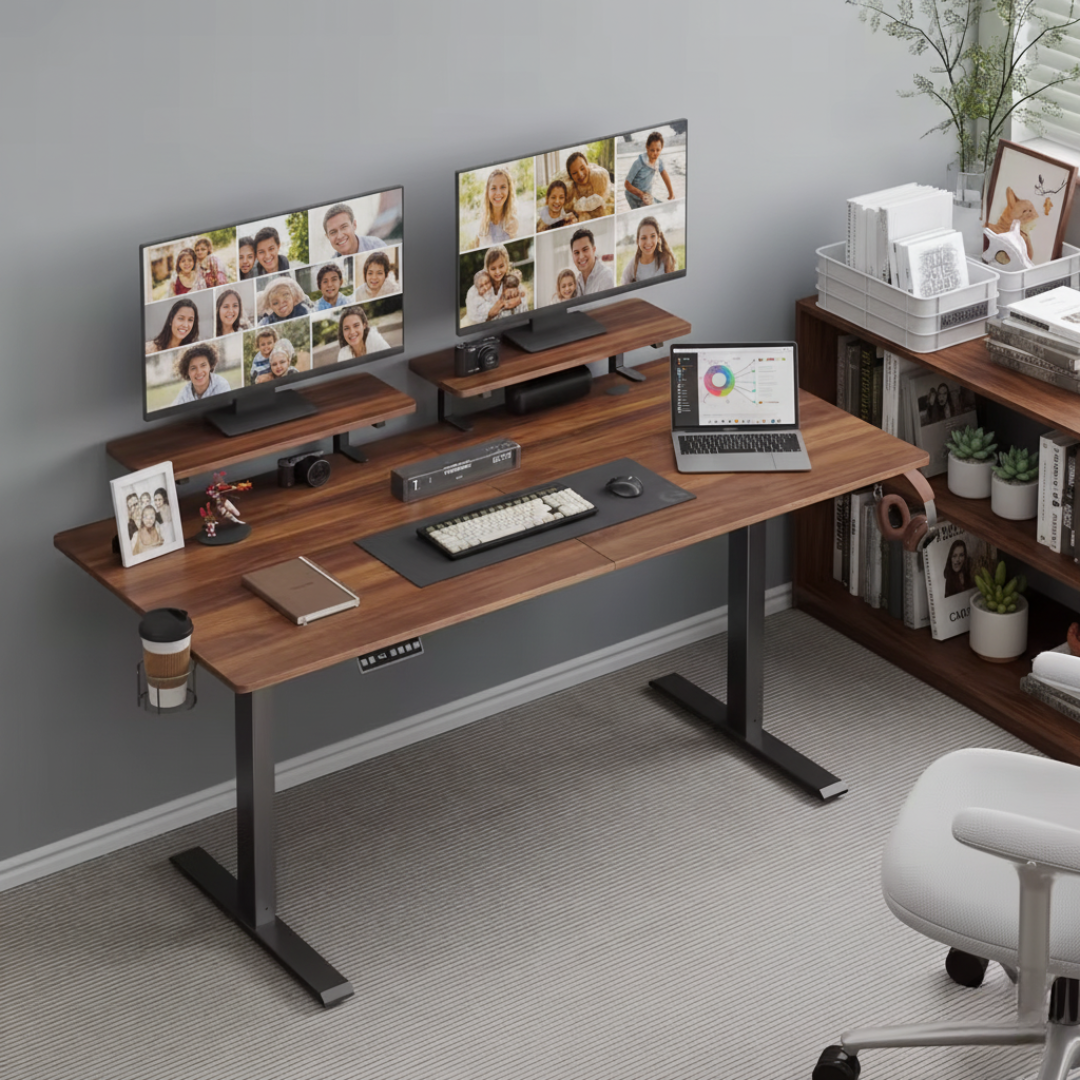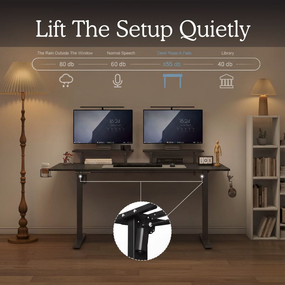 Absolutely. The desk supports up to 154 lbs, making it ideal for dual-monitor setups, laptops, speakers, and other productivity essentials. The motor provides smooth, quiet lifting even under full load, and memory presets allow you to switch heights with a single touch while keeping your entire setup stable.